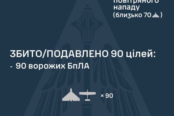 В ніч на 11 березня ППО знешкодила 90 з 99 російських безпілотників Про це інформує пресслужба Повітряних сил ЗСУ, передає Хронікерс....