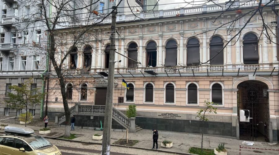 Міністр культури Олександр Ткаченко повідомив, що внаслідок ракетного обстрілу центру Києва пошкоджено будівлю філармонії, музеїв Ханенків та Шевченка. Інформація про постраждалих уточнюється.