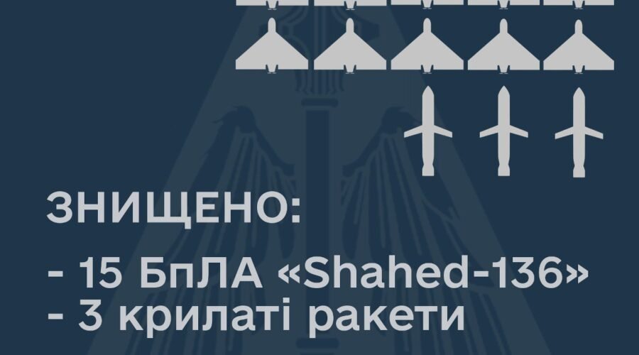 Також ворог атакував критичну інфраструктуру на східному напрямку крилатими ракетами різних типів. Три ракети були знищені зенітними ракетними підрозділами повітряного командування “Схід”.