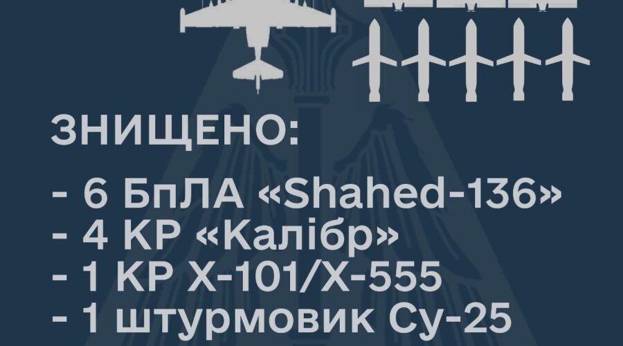 Військові Повітряних сил ЗСУ “приземлили” рашистський Су-25, 5 крилатих ракет та 6 “шахедів”