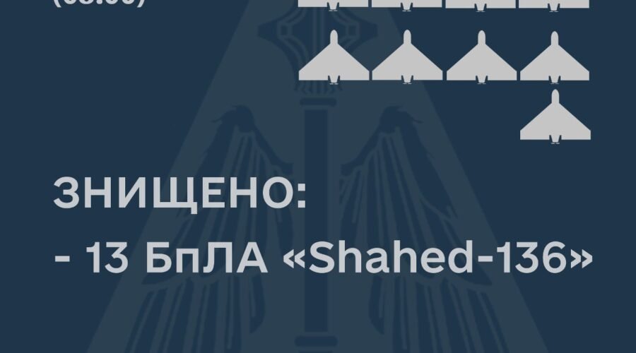 В ніч на 19 жовтня сили повітряної оборони ЗС України збили 13 іранських дронів