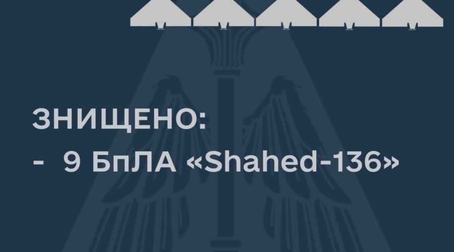У ніч на 4 листопада російські окупанти атакували із східного напрямку іранськими дронами-камікадзе “Shahed-136”. “Вісім баражуючих боєприпасів знищено протиповітряною обороною повітряного командування “Схід”. Ще один дрон – у зоні відповідальності повітряного командування “Захід” Повітряних Сил ЗС України”, – йдеться в повідомленні.