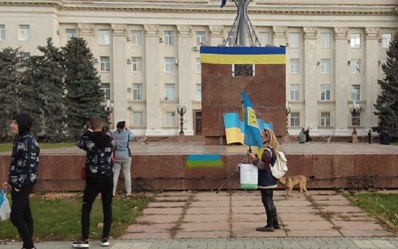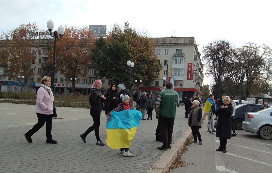 Мешканці Херсону у піднесеному настрої виходять на вулиці з українською символікою