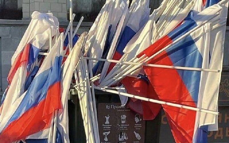 У Москві після концерту в Лужниках, де відзначали річницю повномасштабного вторгнення в Україну, місцеві мешканці не знайшли кращого місця для російських прапорів, ніж сміттєві баки. Фото вони ж самі і виклали у пабліках, передає Хронікерс.