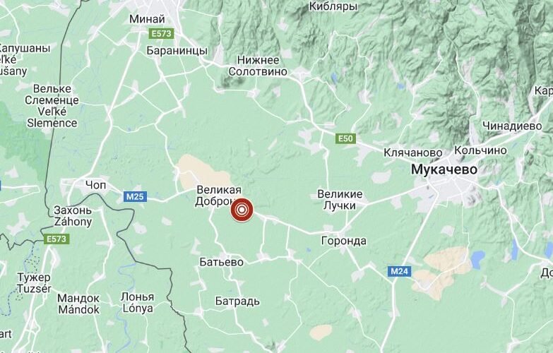 Землетрус магнітудою 3,3 (за шкалою Ріхтера) на глибині 2 км зареєстрували у районі селища Велика Добронь, 19 км на захід від міста Мукачево о 03:15.