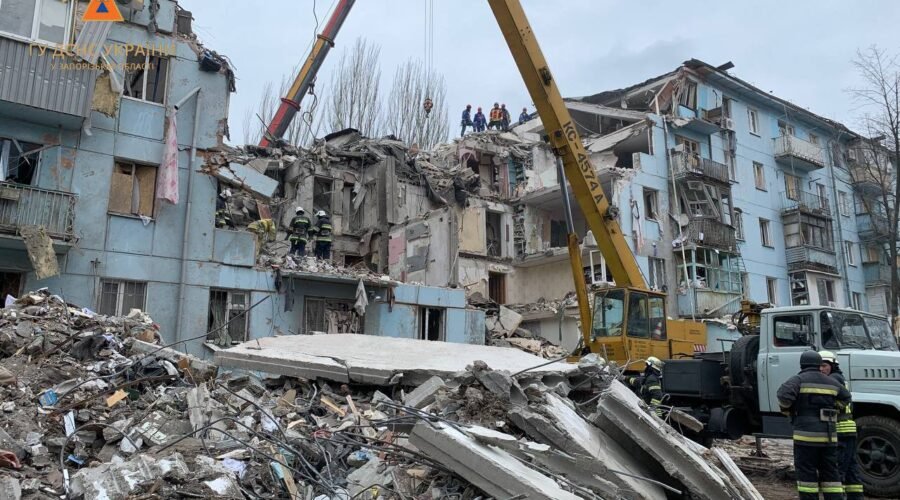 Аварійно-рятувальні та інші невідкладні роботи на місці влучання ракети в будинок у Запоріжжі завершено, робота з постраждалими продовжується