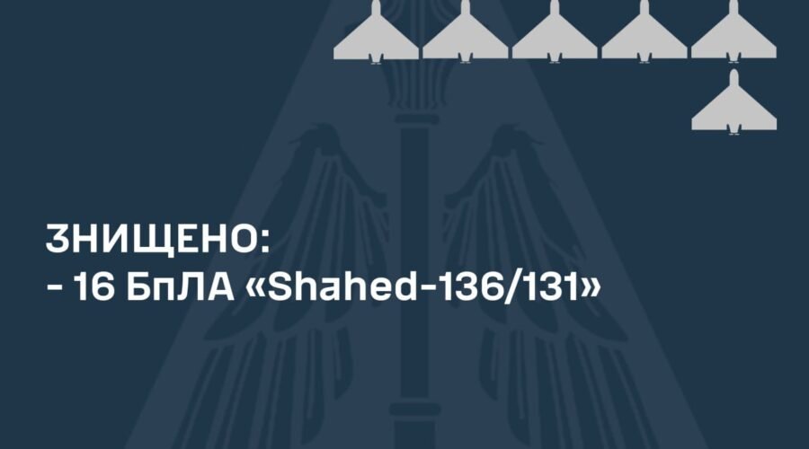 “Загалом зафіксовано пуски 21 ворожого БпЛА з північного напрямку (Брянська область рф). Силами та засобами ПС ЗСУ та інших складових Сил оборони України знищено 16 із 21 ударних БпЛА, переважно в зоні відповідальності повітряного командування “Центр” Повітряних Сил ЗС України”, – йдеться в повідомленні.