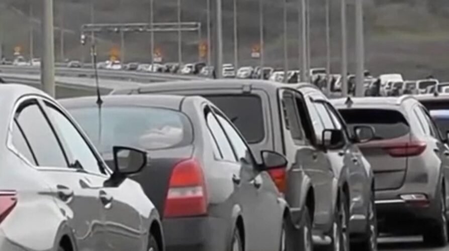 Сотні машин вишикувалися у чергу на Кримський міст у бік росії після вибухів на нафтобазі у Севастополі 29 квітня, передає Хронікерс з посиланням на місцеві пабліки.