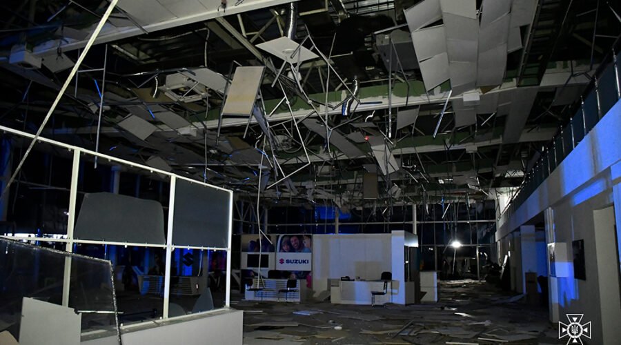 Внаслідок влучання боєприпасів та їх уламків сталось часткове руйнування автосалону, торговельного центру, а також будівлі на об’єкті промислової інфраструктури.