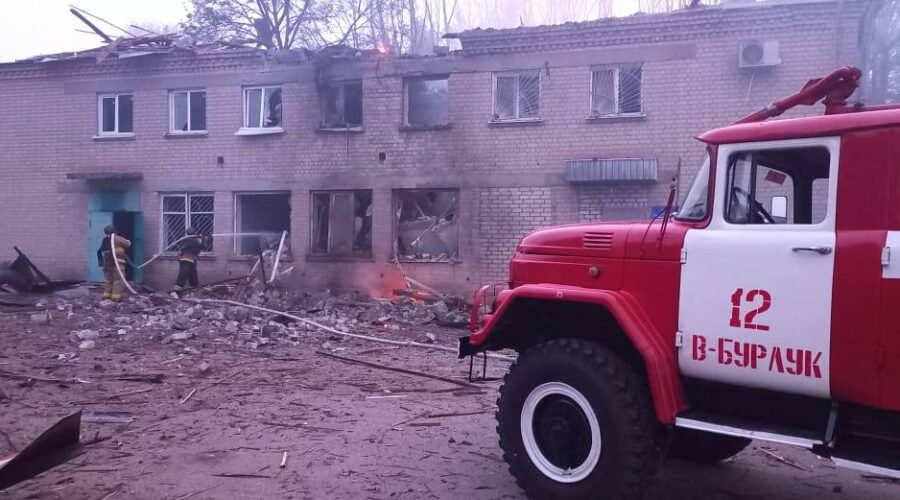 Цієї ночі у Великобурлуцькій громаді виникли 4 пожежі, за попередніми даними, окупанти завдали ударів дронами-камікадзе Shahed. Горіло приміщення школи, офісні будівлі та Будинок культури. Рятувальники Харківщини ліквідували усі пожежі.