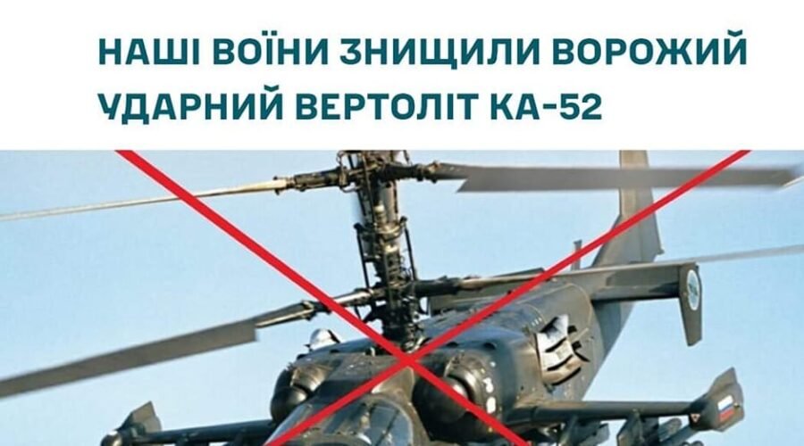 “На Бердянському напрямку протитанкісти бригади з ПТРК Джавелін спалили дороговартісний російський ударний гелікоптер ка-52, відомий як “Алігатор”, – йдеться у повідомлені.