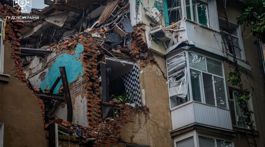 У Сумах третю добу тривають аварійні роботи на місці удару російських безпілотників