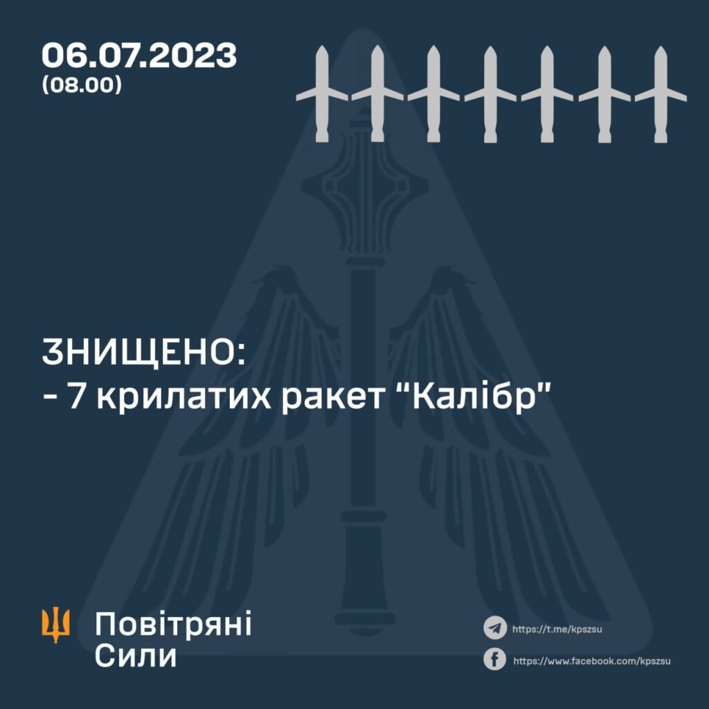 Зенітними ракетними підрозділами та авіацією Повітряних Сил вдалось знищити лише 7 із 10 крилатих ракет “Калібр”.
