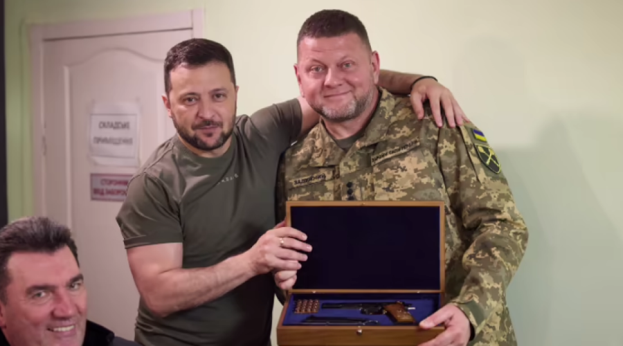 “Мав нагоду привітати з минулим днем народження головнокомандувача Збройних сил України Валерія Залужного (він народився 8 липня) і командувача Сухопутних військ ЗСУ Олександра Сирського (він народився 26 липня). Нагородив генерала Залужного іменною вогнепальною зброєю. Генерал-полковнику Сирському подарував картину, яка відображає подвиг українських воїнів і повагу до них”, — зазначив Зеленський.