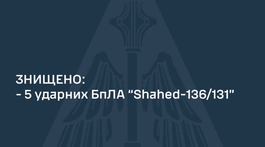 “В результаті бойової роботи силами та засобами Повітряних Сил, у взаємодії з ППО Сил оборони України, знищено п’ять дронів-камікадзе в межах Херсонської та Миколаївської областей”, – повідомили в Повітряних силах.