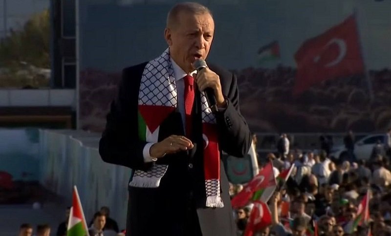 Сотні тисяч людей зібралися на пропалестинському мітингу у Стамбулі в аеропорту імені Ататюрка на чолі із президентом Туреччини Реджепом Ердоганом, передає Хронікерс.