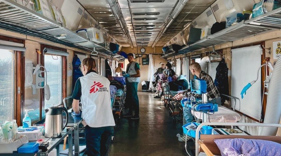 “Зранку в день евакуації був сильний обстріл, і нам довелося чекати в укритті, перш ніж ми могли продовжити переміщення людей із лікарні на потяг”, — розповідає керівниця проєкту медичного евакуаційного поїзда “Лікарів без кордонів” Альбіна Жаркова.