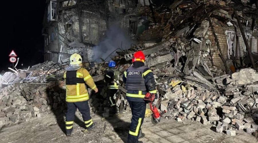 На місцях влучань всю ніч працюють ДСНС та поліція. Пошуково-рятувальна операція триває, поліцейські документують наслідки російських ударів.