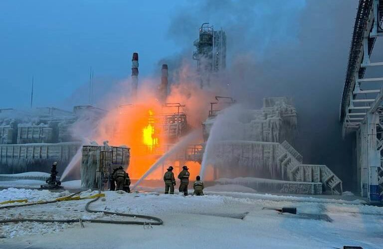 Після вибухів запалав термінал компанії “Новатек”. Місцева влада повідомила, що внаслідок вибухів і пожежі ніхто не постраждав, а усі відповідні служби на місці.