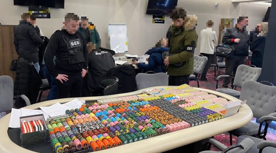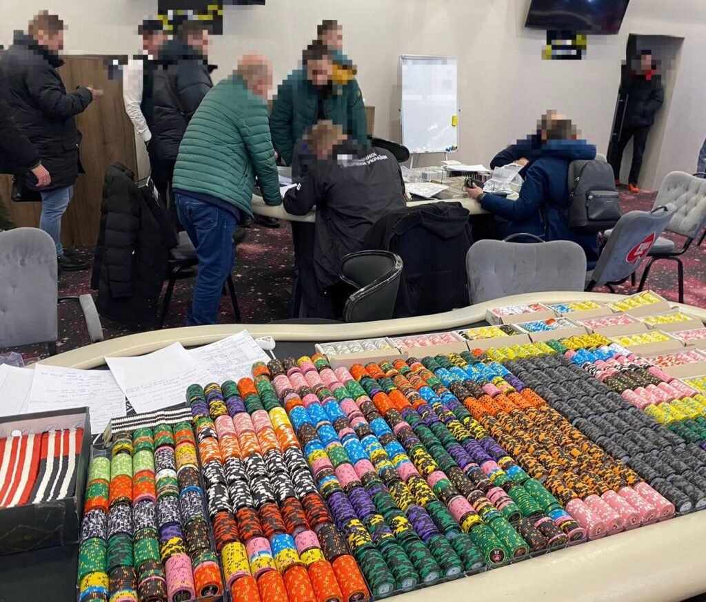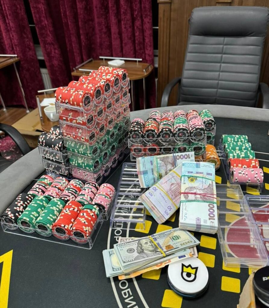 Крім того, вилучена комп’ютерна техніка, мобільні телефони фігурантів та 38 столів для гри в покер, гральні карти та фішки. На готівку та вилучене майно орієнтовною вартістю понад 5,3 млн грн накладений арешт.