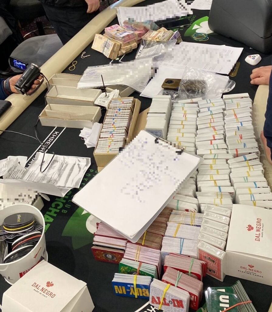 Правоохоронці провели обшуки за адресами розміщення гральних закладів у Києві, Харкові та Одесі. Вилучена різна валюта готівкою в еквіваленті понад 1,3 млн грн, чорнова бухгалтерія, підрахунки доходу від гри в покер.