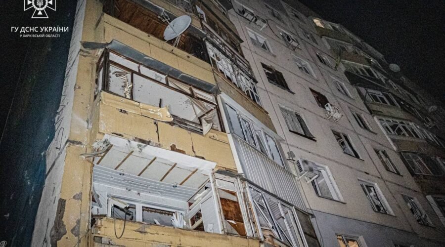 Внаслідок удару російських безпілотників по Харкову пошкодження отримали житлові багатоповерхівки, приватний будинок, магазин та три автомобілі. Відомо про трьох постраждалих