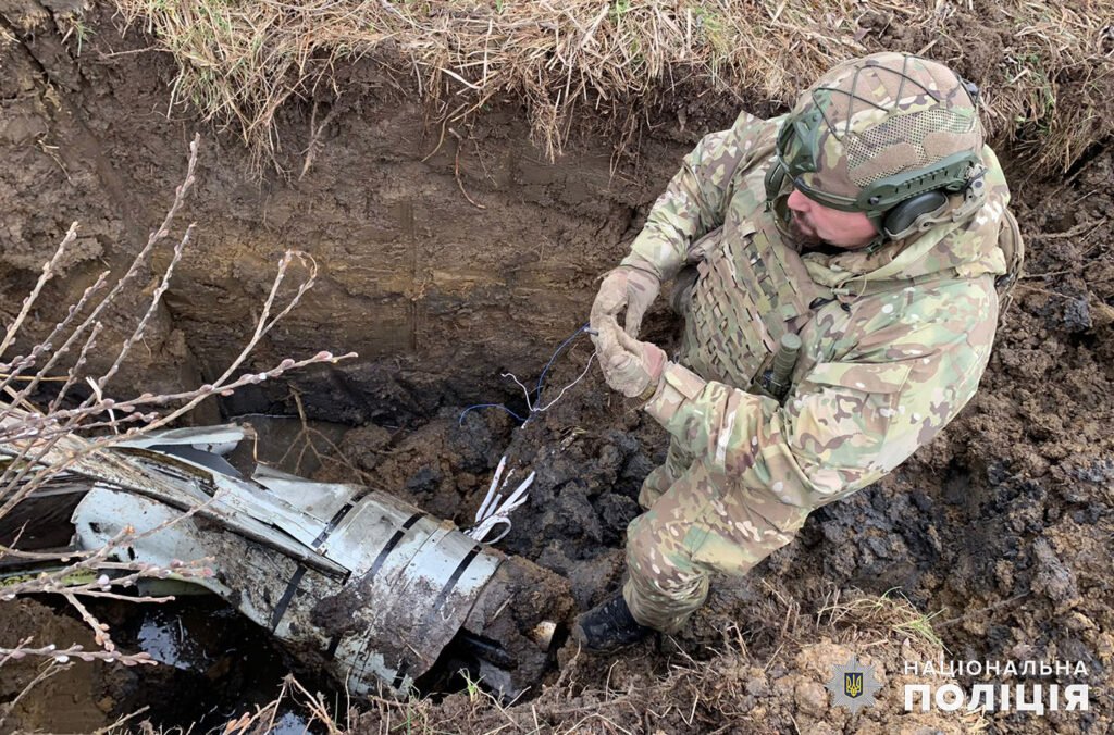 Вибухотехніки поліції Хмельниччини знешкоджують небезпечні залишки ракет та безпілотників, якими ворог регулярно обстрілює територію області