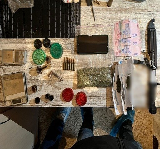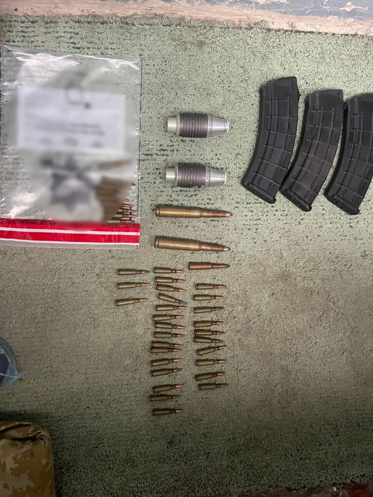 Під час проведення санкціонованих обшуків правоохоронці виявили та вилучили більше тисячі набоїв різних калібрів, гранати Ф-1, РГД-5 та запали до них, ВОГ-25, грошові кошти, наркотичні речовини та компʼютерну техніку.