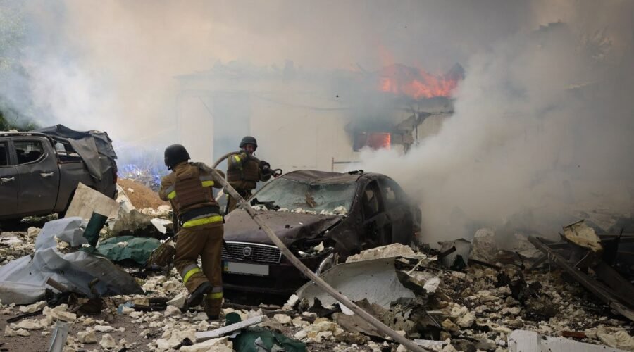 Рятувальники загасили пожежу, що виникла після ракетного удару. Горіла територія СТО в одному з районів міста, зокрема, будівля та припарковані поруч автомобілі, на площі 400 кв. метрів.