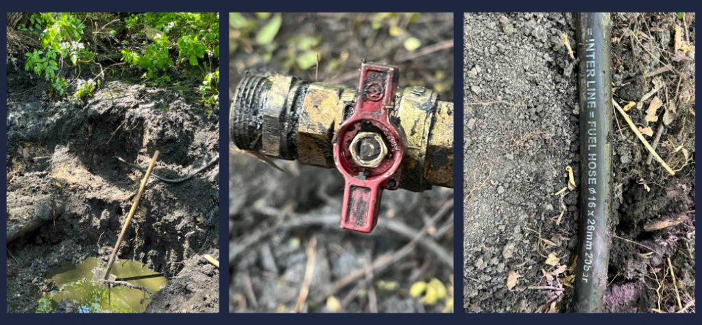 “Врізка виготовлена за допомогою патрубка висотою 5 см з кульковим краном діаметром 1 дюйма. До нього приєднаний гумовий шланг високого тиску діаметром ¾ дюйма, довжиною 30 метрів, заповнений нафтою. На кінці шлангу встановлено кульковий кран діаметром 1 дюйм”, – йдеться у повідомленні.