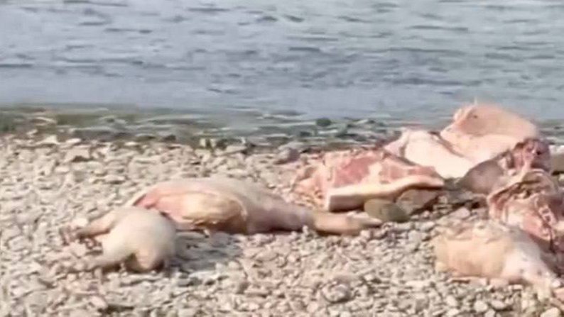 За словами заступниці начальника обласної Держпродспоживслужби Анжели Косован, на березі виявили свіжу тушу двомісячної свійської свині, а також 12 частин та субпродукти дорослої свині.