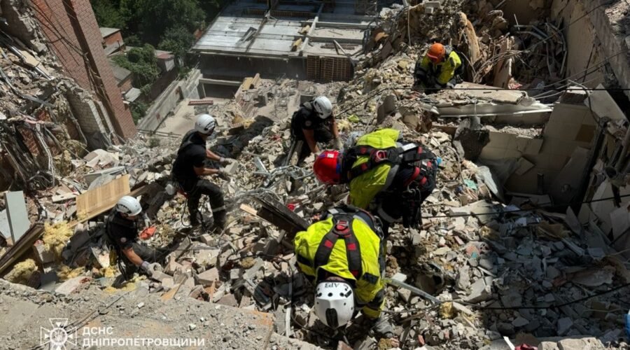 Ракетний удар по багатоповерхівці у Дніпрі: Пошуково-рятувальна операція триває (ФОТО)