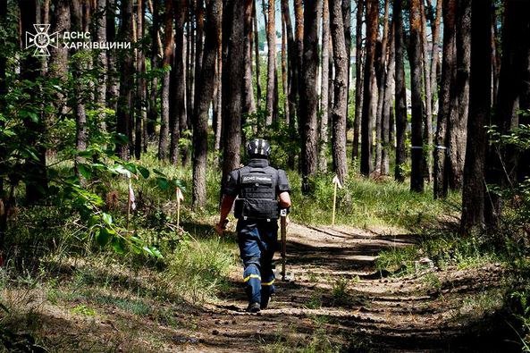 Як кажуть рятувальники, ліси Харківщини дуже небезпечні – всюди розкидані касетні боєприпаси, протипіхотні міни та нерозірвані снаряди.