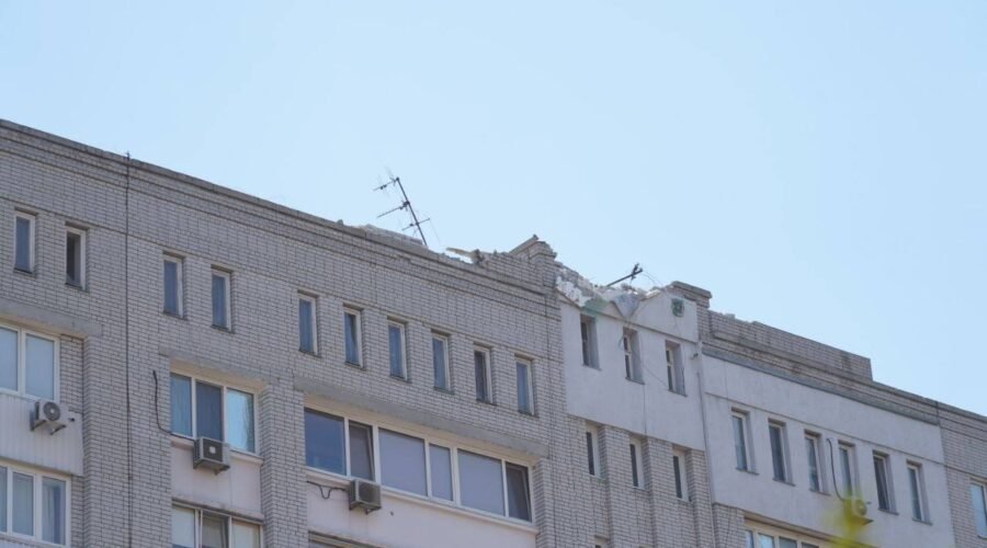 Внаслідок ворожої атаки пошкоджена багатоповерхівка. Потрощило й машини навколо. Всі наслідки наразі зʼясовуються.