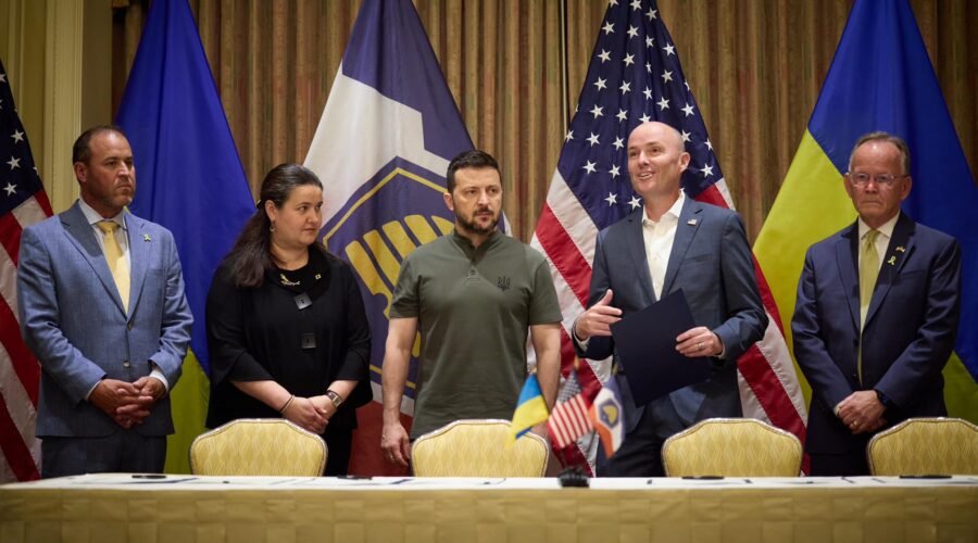 “У присутності Президента Володимира Зеленського Посол України у США Оксана Маркарова підписала Меморандум про взаєморозуміння між Київською ОВА та штатом Юта з губернатором Юти Спенсером Коксом. Розширюємо співпрацю з американськими штатами”, – йдеться у повідомленні.