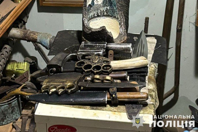 Під час санкціоновано обшуку у господарстві чоловіка поліцейські виявили кулемет, два мисливських карабіни, сигнальний пістолет (ракетницю), 3 штик-ножі, 2 кастети. Усе вилучене направлено на експертизу.