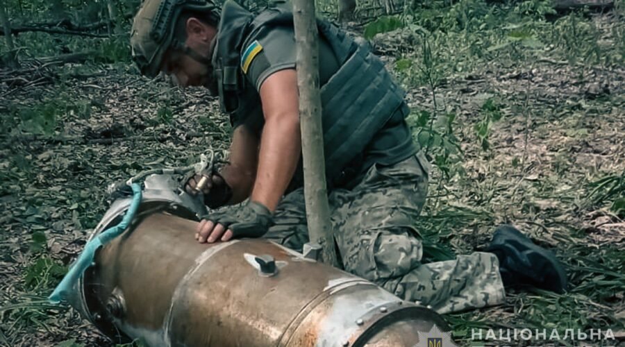 На Сумщині вибухотехніки поліції знешкодили і знищили бойову частину російської ракети Х-59 вагою 280 кг