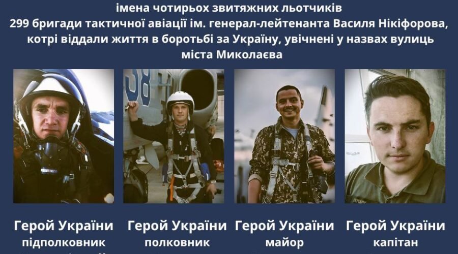 Чотири вулиці в Миколаєві перейменовано на честь героїв України – бойових льотчиків, що отримали ці високі звання посмертно