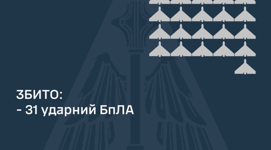 “В результаті протиповітряного бою збито 31 ворожий БпЛА в Київській, Полтавській, Чернігівській, Сумській та Черкаській областях”, – звітують військові.
