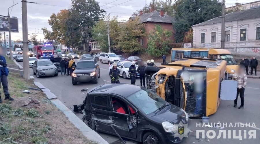 Так, 33-річний водій Peugeot допустив зіткнення з маршруткою «Рута» з пасажирами. Також були пошкоджені ще дві припарковані автівки.