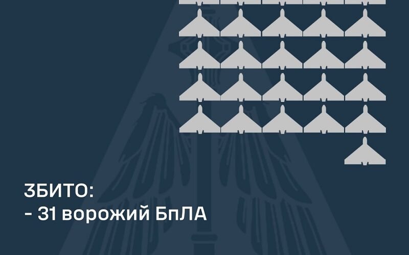 В результаті протиповітряного бою Повітряними силами було збито 31 російський дрон