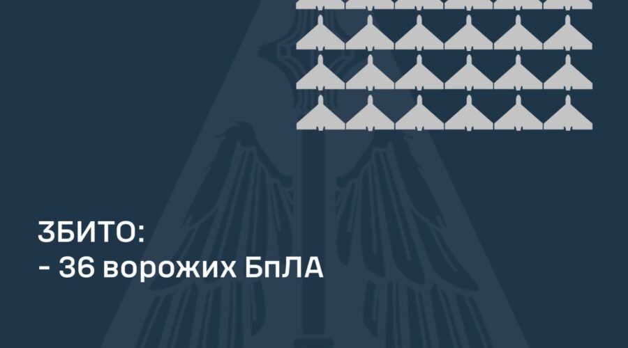 “Станом на 10:00 підтверджено збиття 36 ворожих БпЛА в Одеській, Київській, Миколаївській, Дніпропетровській, Вінницькій, Кіровоградській, Житомирській, Хмельницькій, Черкаській, Львівській, Рівненській, Полтавській та областях. Більшість ворожих БпЛА збито на Одещині та Київщині”, – звітують в Повітряних силах.