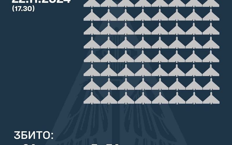 У Повітряних Силах ЗС України повідомили, що протягом доби окупанти запустили по Україні 114 дронів передає Хронікерс.
