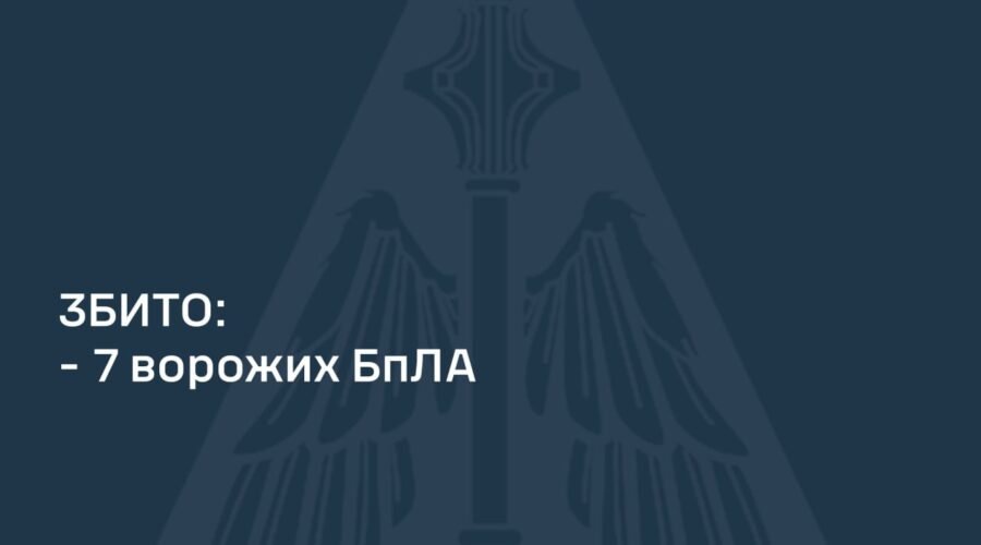 Станом на 08:30 підрозділами зенітних ракетних військ, РЕБ та мобільних вогневих груп Повітряних Сил та Сил оборони України збито 7 ворожих БпЛА у Київській, Вінницькій, Одеській, Черкаській та Житомирській областях.