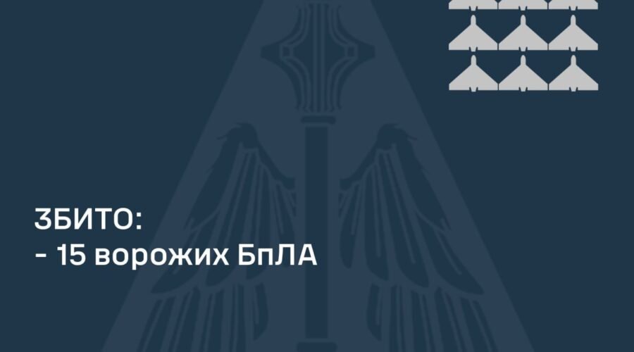 Знищено 15 ворожих дронів у Миколаївській області силами РЕБ та мобільними вогневими групами Повітряних сил і Сил оборони України. Один безпілотник локаційно втрачено.