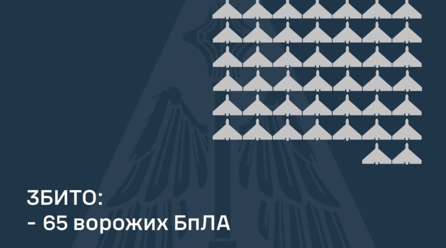 “Станом на 09:30 підтверджено збиття 65-ми ударних БпЛА типу “Shahed” та безпілотників інших типів у Київській, Харківській, Полтавській, Сумській, Чернігівській, Черкаській, Кіровоградській, Житомирській, Дніпропетровській, Запорізькій, Миколаївській, Одеській та Херсонській областях. 28 ворожих безпілотників-імітаторів локаційно втрачені”, – звітують військові.