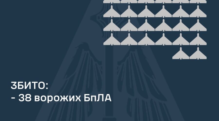 “Станом на 09:00 підтверджено збиття 38-ми ударних БпЛА типу «Shahed» та безпілотників інших типів у Харківській, Полтавській, Сумській, Київській, Чернігівській, Черкаській, Запорізькій, Дніпропетровській, Вінницькій та Хмельницькій областях. 25 ворожих безпілотників-імітаторів локаційно втрачені”, – звітують в Повітряних силах.