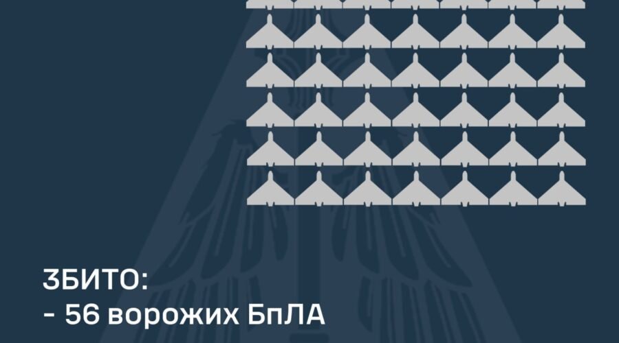 “Станом на 09:00 підтверджено збиття 56 ударних БпЛА у Харківській, Полтавській, Сумській, Київській, Черкаській, Чернігівській, Житомирській, Вінницькій, Запорізькій, Дніпропетровській та Одеській областях. 18 ворожих безпілотників-імітаторів локаційно втрачені”, – звітують в ПС ЗСУ.