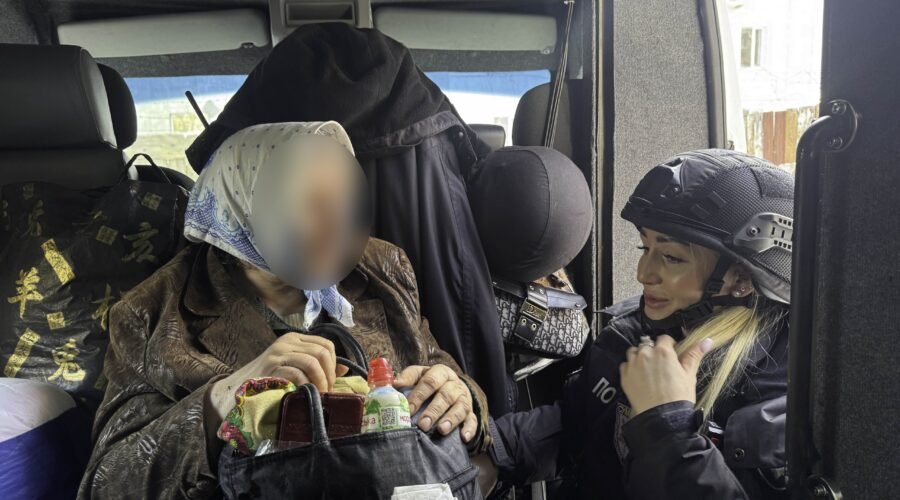Поліцейські спецпідрозділу “Білий янгол” евакуювали бабусю з-під обстрілів