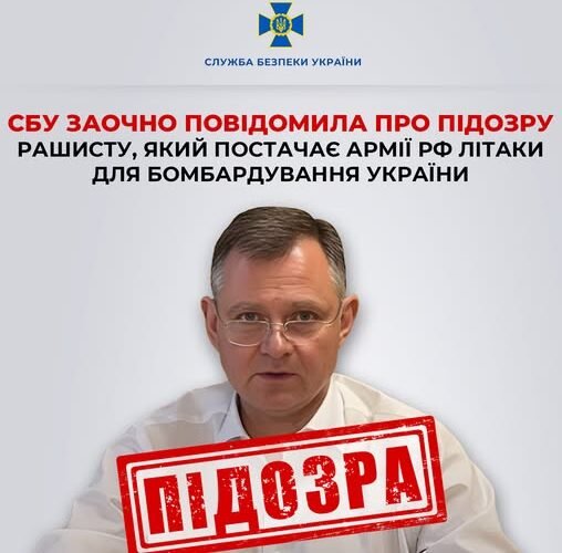 СБУ заочно повідомила про підозру рашисту, який постачає армії РФ літаки для бомбардування України